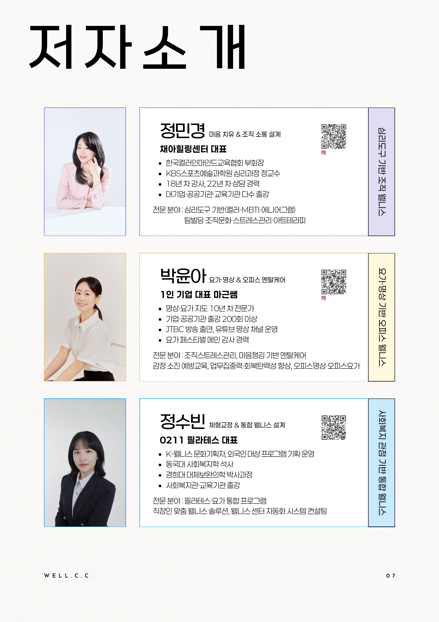 요가, 필라테스, 컬러테라피, 명상, 심리 기반 전문가들이